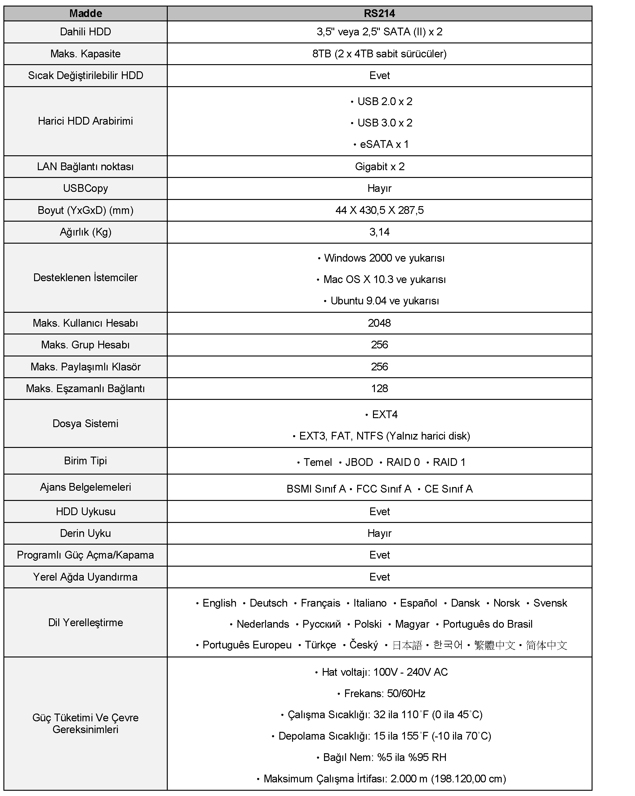 | Uyumluluk Listesi (WEB) | http://www.synology.com/enu/products/compatibility.php |